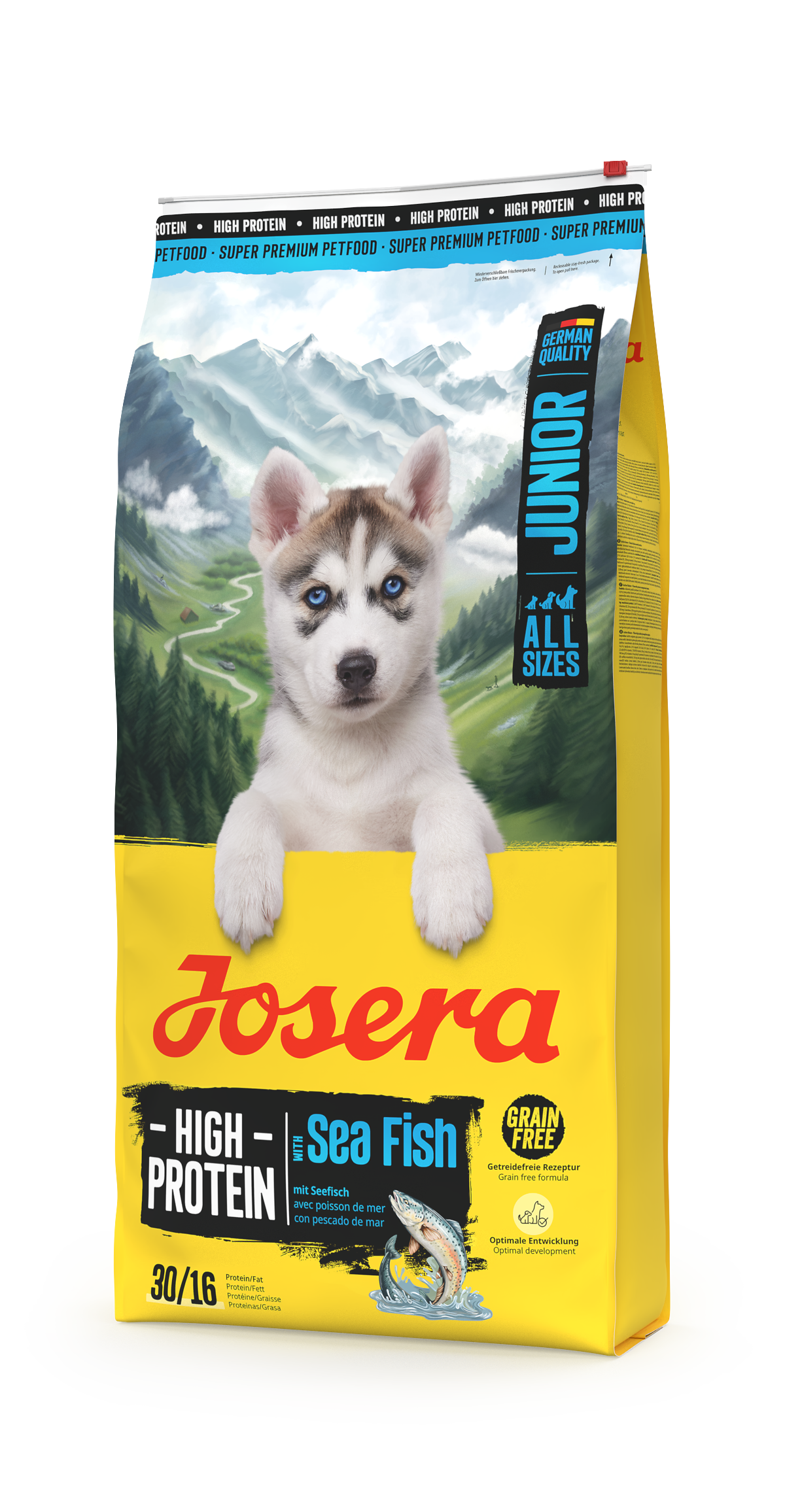 A Josera Junior High Protein High Sea Fish optimális táplálást nyújt a kis energiabombáknak - mindennap. Ez a fehérjében gazdag kölyökkutyatáp nemcsak jól tolerálható és ízletes, hanem az értékes lazacfehérjének és az édesburgonyának köszönhetően rengeteg energiát is biztosít számukra. A különösen aktív kölyköket a 6. élethéttől kezdve minden szükséges tápanyaggal ellátja.